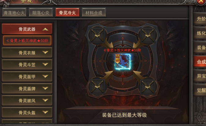 8. 新增玩法--异火-合成--骨灵冷火:可使用材料进行合成高级装备;