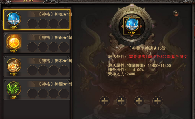 b. 神格装备可佩戴4枚符文,激活相应的符文之力需要佩戴对应数量和颜色的符文;