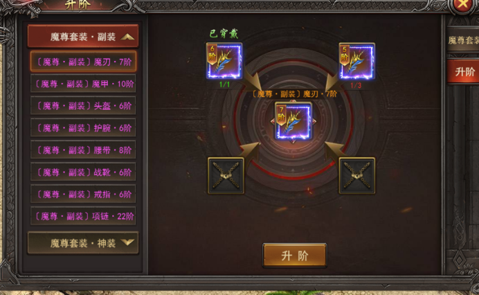3. 古神荒域--古神装备--幻化:魔尊副装/神装全套达到5阶后可幻化;