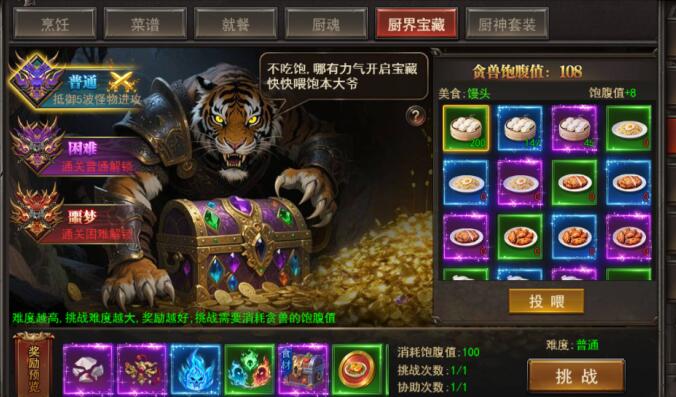 a. 厨界宝藏有3个难度,普通、困难、噩梦;