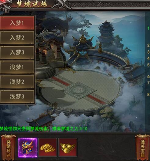 b. 每关都有挑战时间,时间结束后挑战失败,击败守关的梦魇boss会掉落奖励;