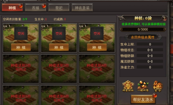 c. 收获农作物时,可获得种植经验,提升种植等阶,提升种植等阶,可购买更多农田;