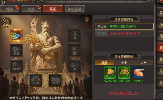 a. 每天可祭祀1次,激活神农特权后,每天祭祀次数额外+1次;