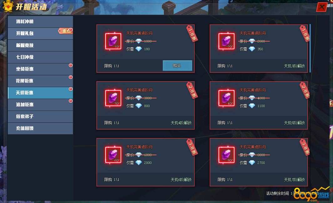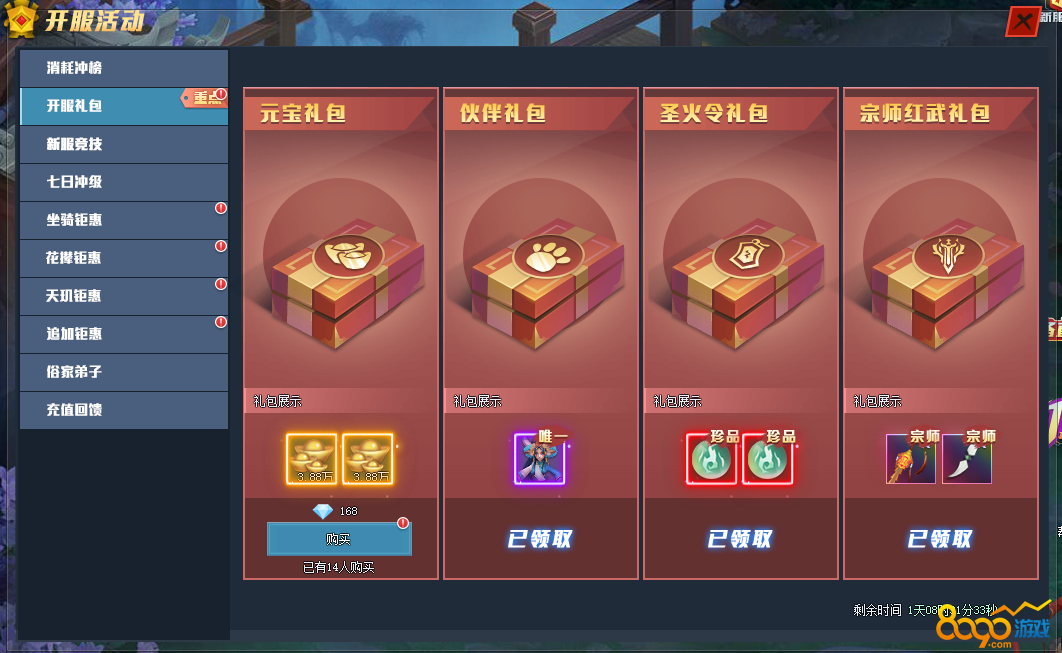 活动说明:活动期间,限时抢购珍品唯一礼包!