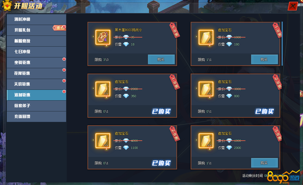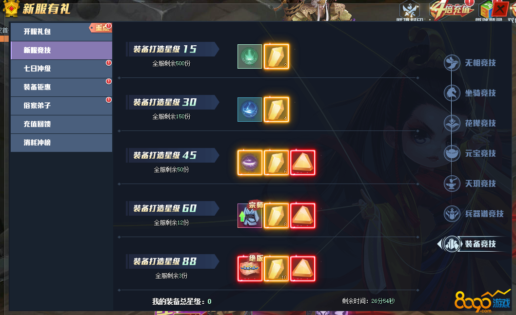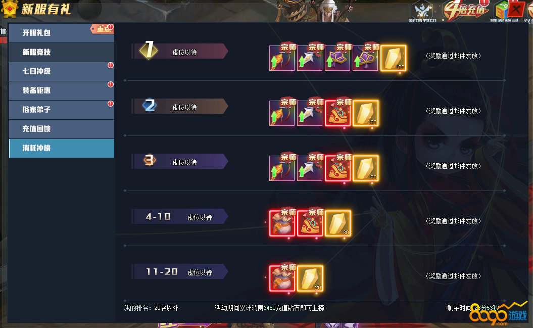 活动说明:累计消费6480充值钻石可上榜,争夺二转大宗师装备以及追加宝石!