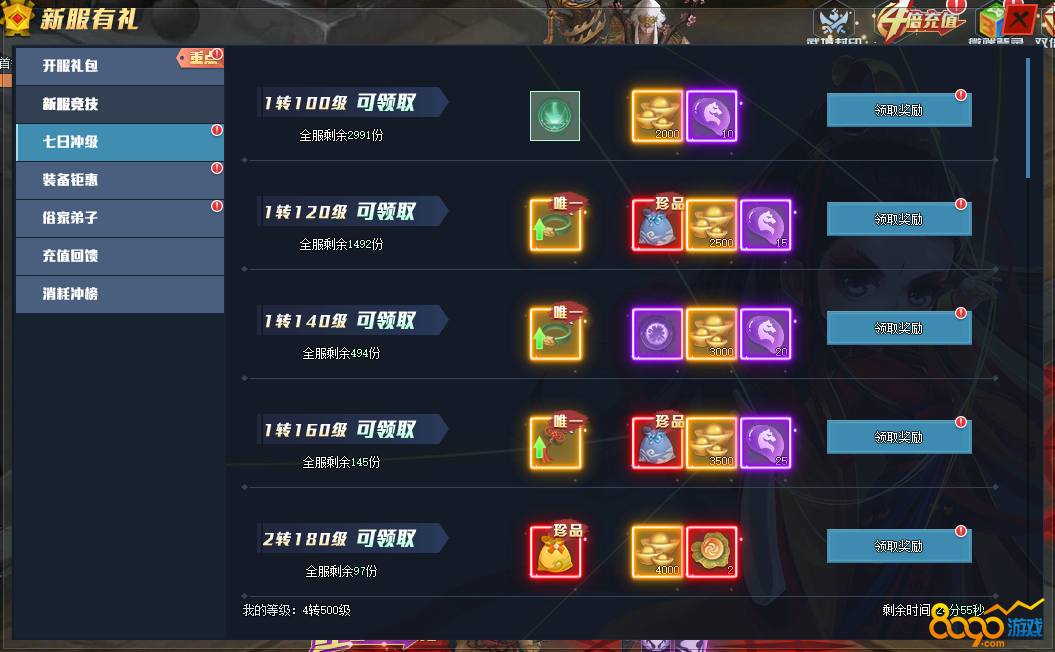 活动说明:活动期间,冲级到要求等级可领取绝版道具!