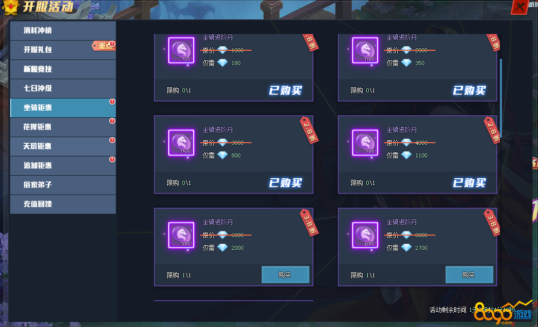 活动说明:贵族收益特权,超低折扣购买绝版坐骑!