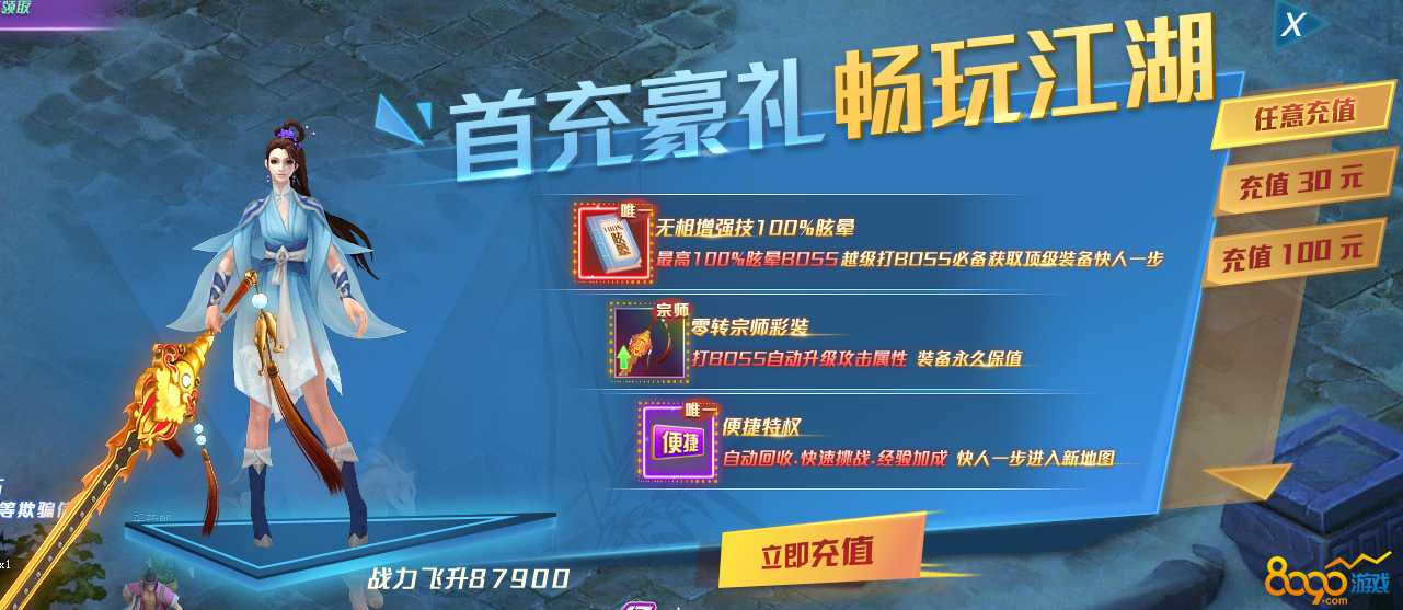 任意首充,100%眩晕 零转红装宗师武器 便捷特权
