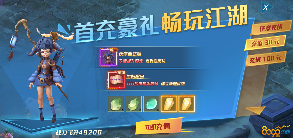 活动说明:赞助首充 分三档——任意档、30元、100元