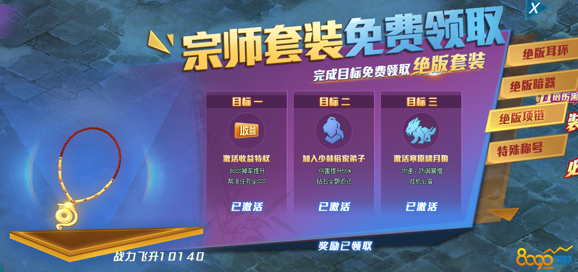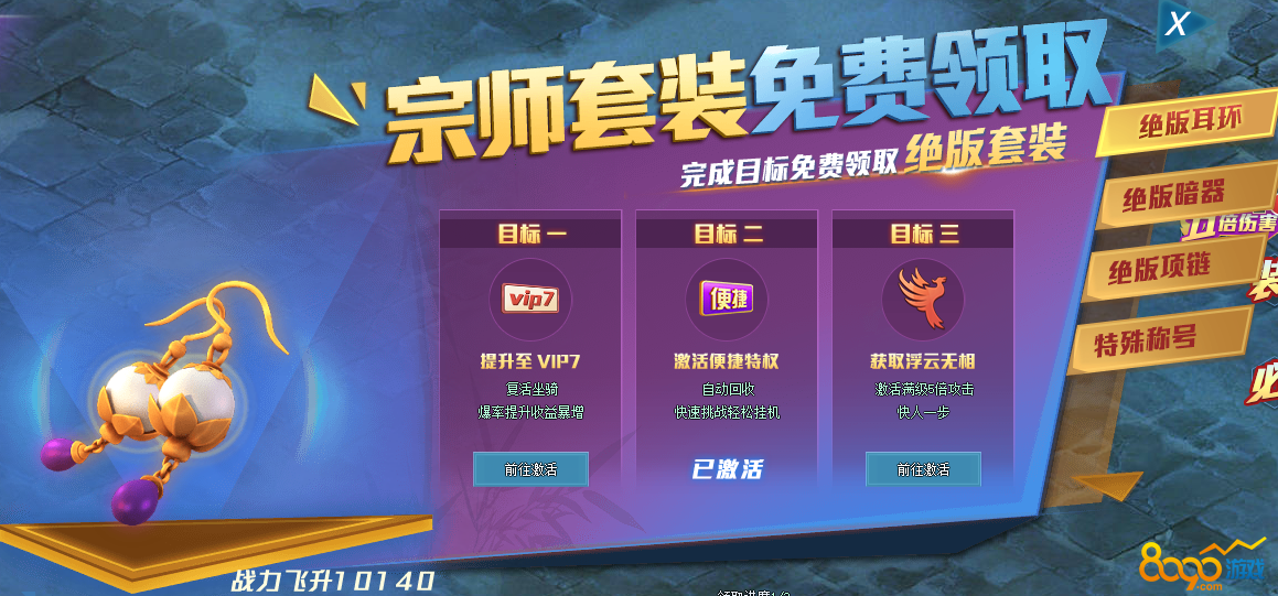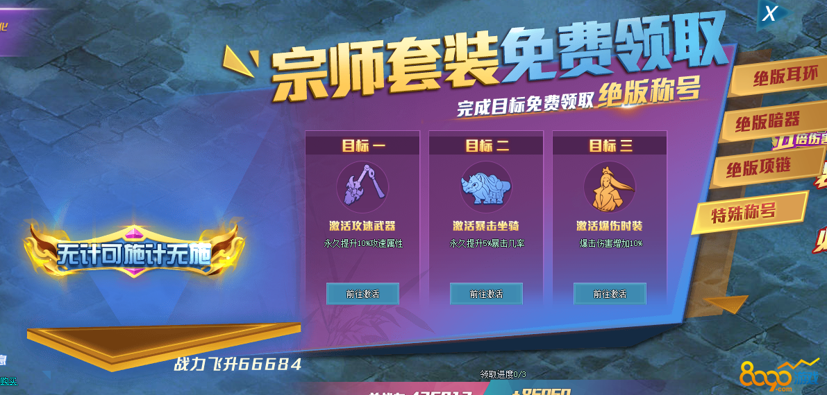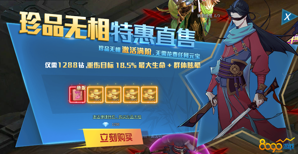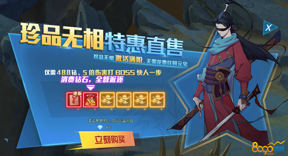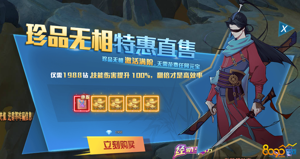 活动说明:珍品无相激活满阶,无需花费任何元宝!