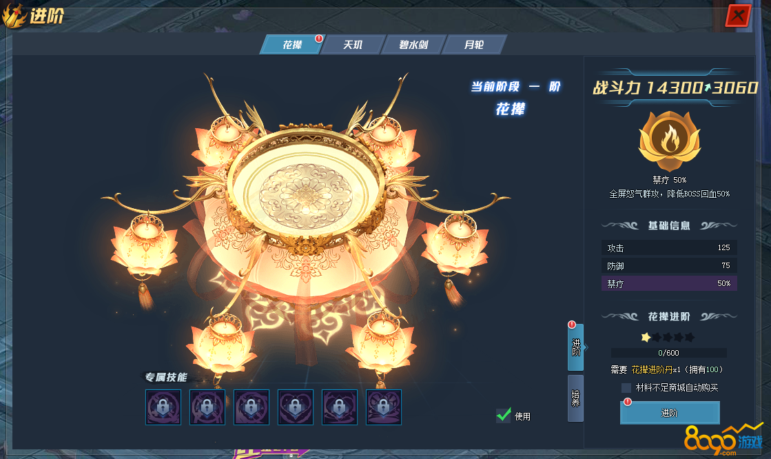 同时花撵还会降低BOSS回血的属性,是玩家打怪必备的物品。玩家可通过使用花撵进阶丹对花撵进行升级,花撵的等级越高对BOSS回血的限制越强。