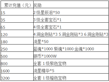 1、玩家累计充值达到指定金额,可获得相应累充的奖励;