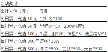 第一天—第三天:1级星辰泪*5、高级将魂令*3、20000银币。