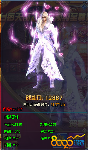 1、 被求婚玩家接受求婚后,双方变为夫妻关系,并获得相应的夫妻装备——红尘套装(超高加成属性)。