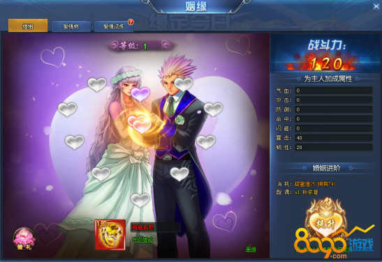 8、 新人参加婚礼会赠送婚戒,婚戒增加玩家人物属性,离婚不收回。