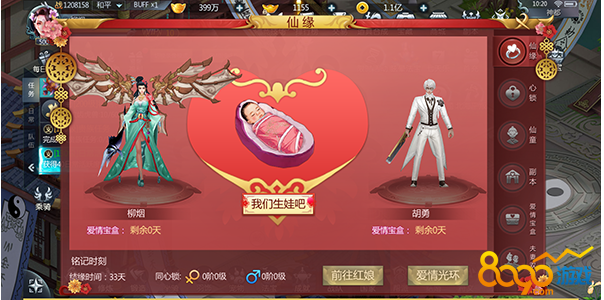 孩子是爱情的结晶,结婚之后,完成生娃条件即可孕育自己的仙童(不结婚也可以在商城领养自己的仙童哦):