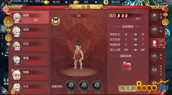 提升仙童等级可解锁二胎以及强力辅助技能!(提升仙童等阶的道具可在默契考验副本中获得。)