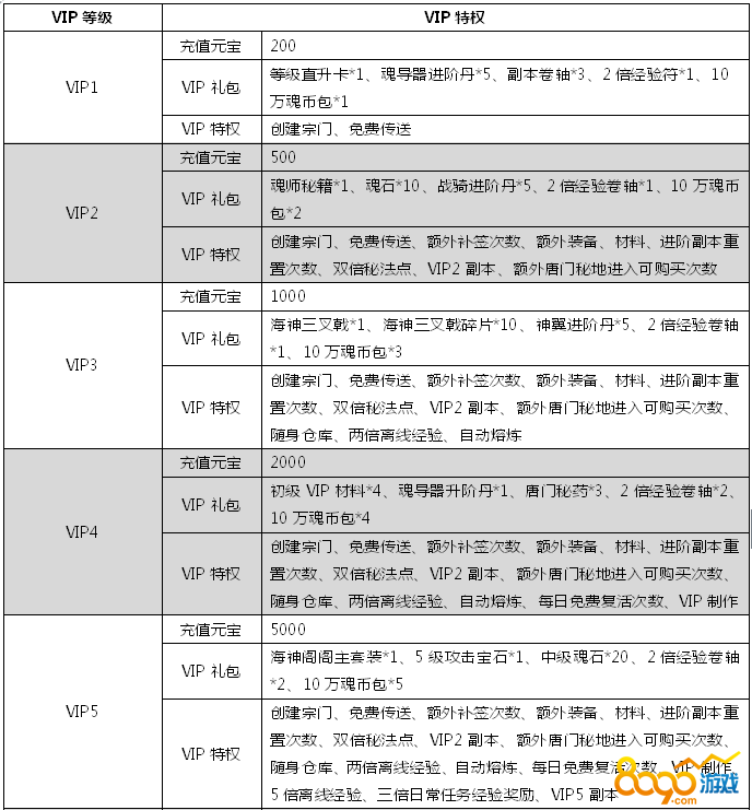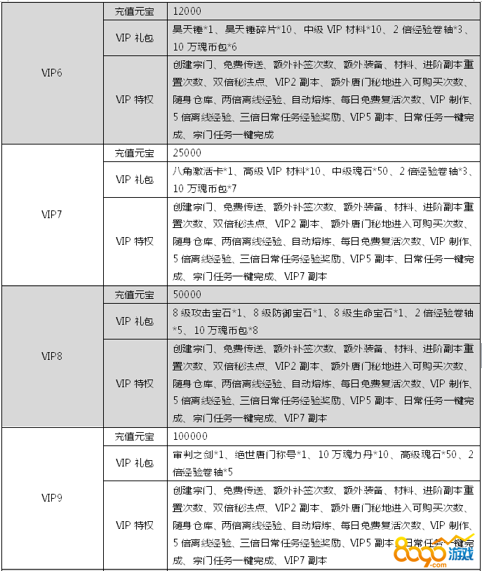 绝世唐门VIP特权种类丰富,等级共分10档, ,包含免费传送、随身仓库、5倍离线经验、日常任务一键完成等非常实用的功能,具体VIP特权如下: