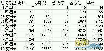 翅膀所需要的花费,就是下图的表格了,没有获取到四阶翅膀的玩家,是可以获取到二阶和三阶的来过度一下的哦: