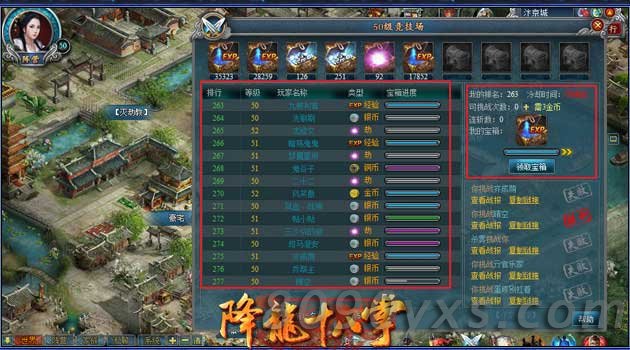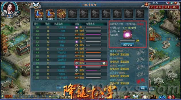 竞技场挑战:宝箱成熟后可以领取,竞技场宝箱包括铜币、银币、金币、经验、劫,品质分为白色、绿色、蓝色、紫色、橙色。当宝箱成熟度大于10%就进行收取,但是获利很少,宝箱成熟度满了是获利最多的时候。可以收获自己的宝箱,也可以打劫别人的宝箱。想获得更多铜币,那就多关注竞技场的宝箱吧~