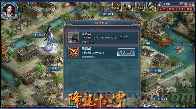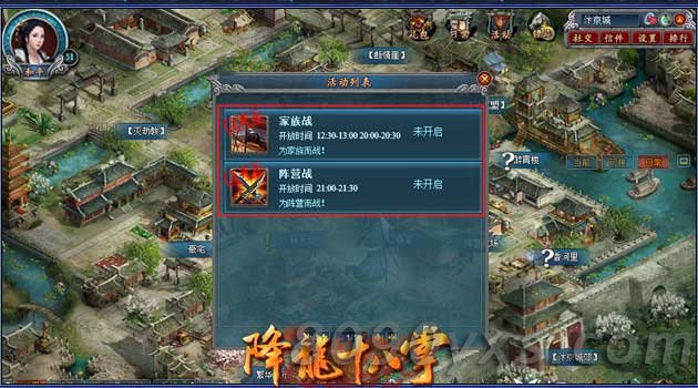 家族战:家族战的开启时间为每天的中午12:30~13:00,晚上20:00~20:30,家族战场中,每战胜1个对手都能获得积分,积分越高,家族战结束后获得的金币数量就越多。