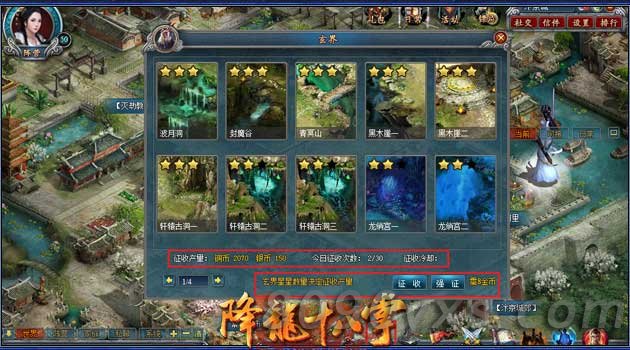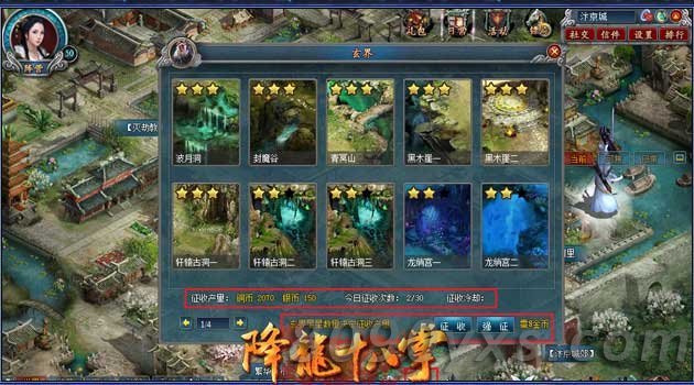 征收:从玄界进入,点击征收,征收的次数是每隔2小时恢复2次,也就是说每天24次。另外可以强征,强征是需要消耗金币的,第1次是2金币,第二次是4金币,之后每次强征增加2金币消耗,到20金币一次的时候,会持续每次强征20金币直至强征次数用完。