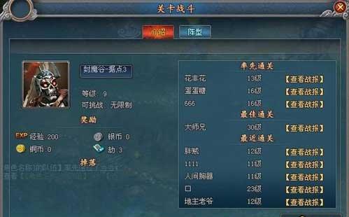 玄界每个关卡选择后都可以查看关卡介绍、关卡掉落以及关卡的敌方阵型。在阵型中还可以即时改变我方的阵型以及英雄使用的技能。