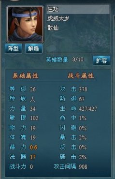 攻击:影响英雄在战斗中造成的伤害,攻击越高,造成的伤害越高。