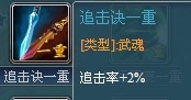 追击决:这个武魂在一测,二测都没什么人用,现在改版后,BT的追击率,是继攻击武魂后第二个DPS的超级武魂,追击是在原有功击一次后有机率重复一次功击,类似十八摸,配合十八摸使用效果更佳。