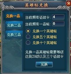 英雄贴获得方法:如下图所示,可以通过征战令兑换阶品的英雄贴。低品英雄贴可以合成高品英雄贴。