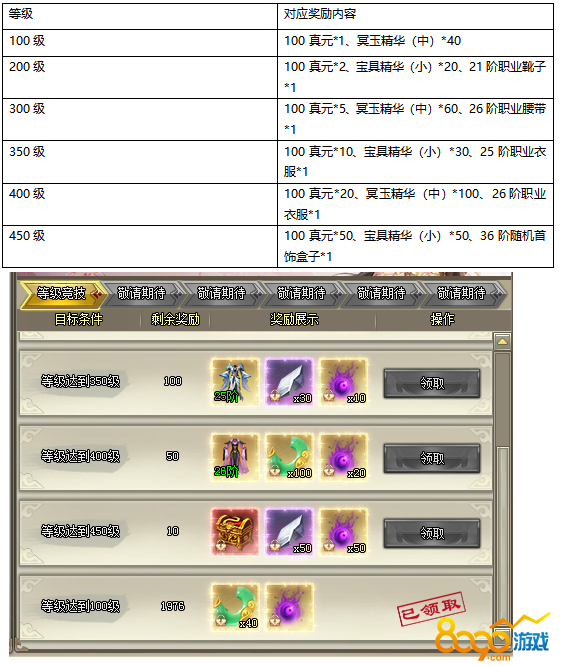 活动期间达到一定的等级就能领取相对的奖励,数量有限,先到先得。