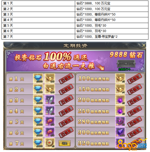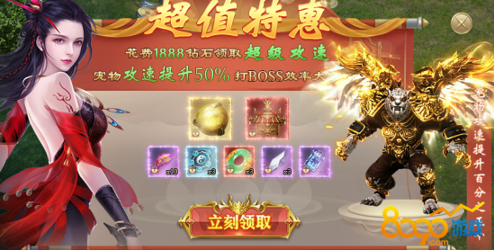 活动时间内,花费1888钻石领取超级攻速,宠物攻速提升50%打boss效率大幅上升。