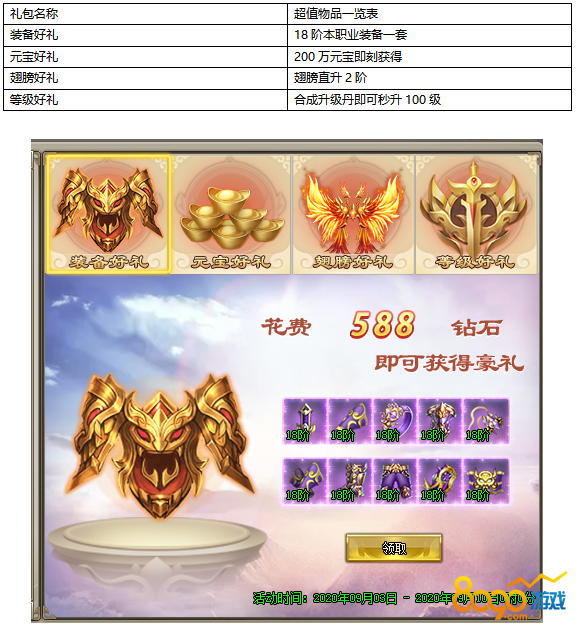 开服四大特惠礼包强势来袭,助你一秒超神,从人群中脱颖而出,成就高手,载入史册。