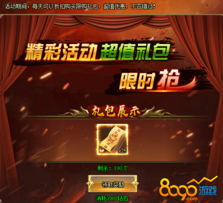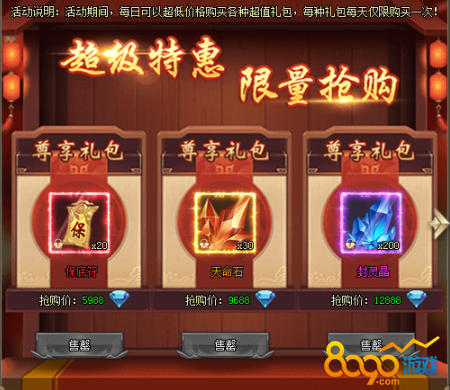 1、活动期间,每日可以超低价格购买各种超值礼包,每种礼包每天仅限购1次。[游戏内显示为准,开服7天后开启]
