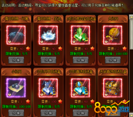 1、活动期间,寻宝可以获得大量惊喜徽章,可以用于兑换各种珍稀道具!兑换次数每日0点重置,记得当天兑换领取完奖励哦!![游戏内显示为准,开服7天后开启]