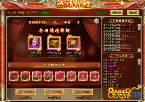 1、活动期间,每充值100钻石可获得100鸿福鱼食![游戏内显示为准]
