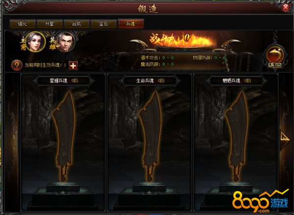 主角及英雄达到80级开启兵魂功能,玩家可以通过主界面的锻造按钮进入兵魂界面。