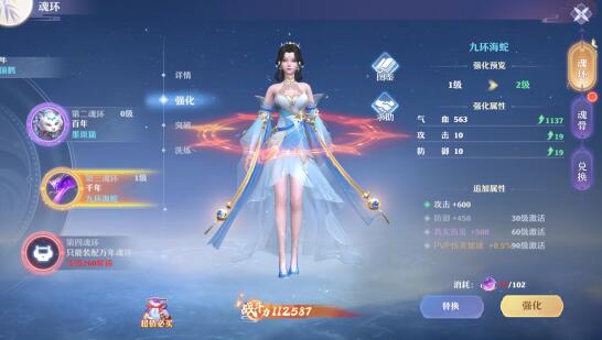 强化魂环,提升属性,强化指定等级,额外追加属性。