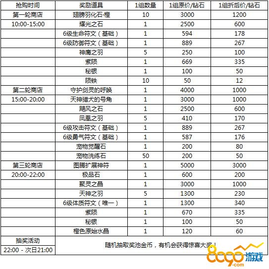 1、开启三轮抢购商店,超值商品全服限时限量抢购;