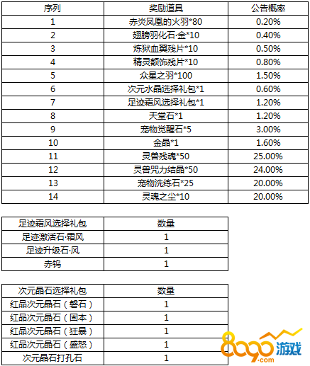 盛典宝藏:活动期间每1次寻宝可获得以下随机奖励: