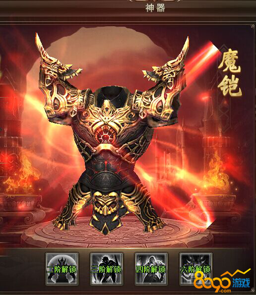 搜索"8090网页游戏"魔铠是血盟荣耀中神器里面的一个系统,不仅可以给人物增加属性和战斗力,达到一定的阶数还有技能。