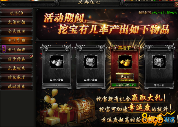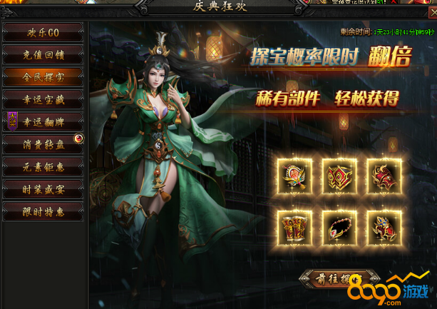 活动内容:活动期间,宝藏有几率额外产出海量元宝及8-10转极品本职业装备!额外幸运,额外大奖,等您来抢哦~