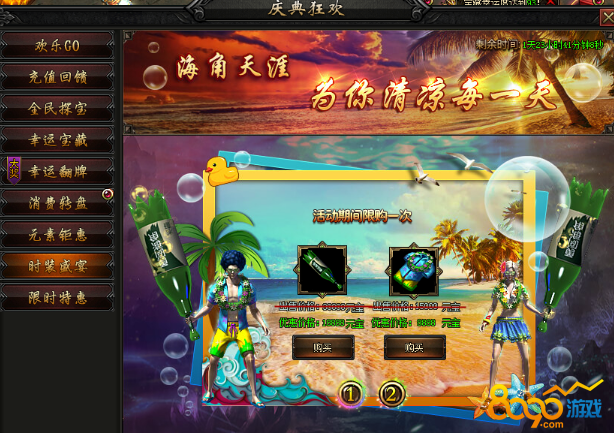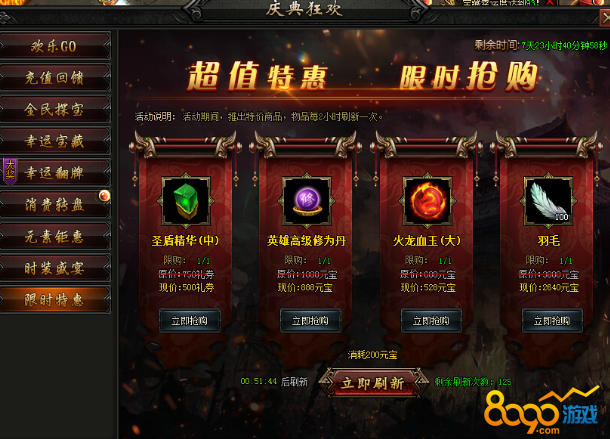 活动内容:活动期间,限时推出特价道具,物品每2小时刷新一次。