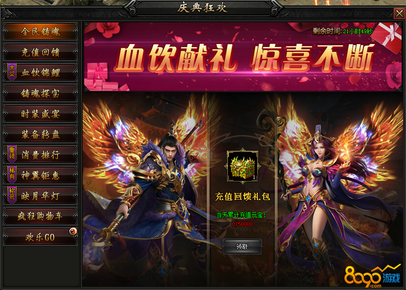 活动内容:活动期间,每日充值达到一定额度后领取超豪华血饮献礼一份。