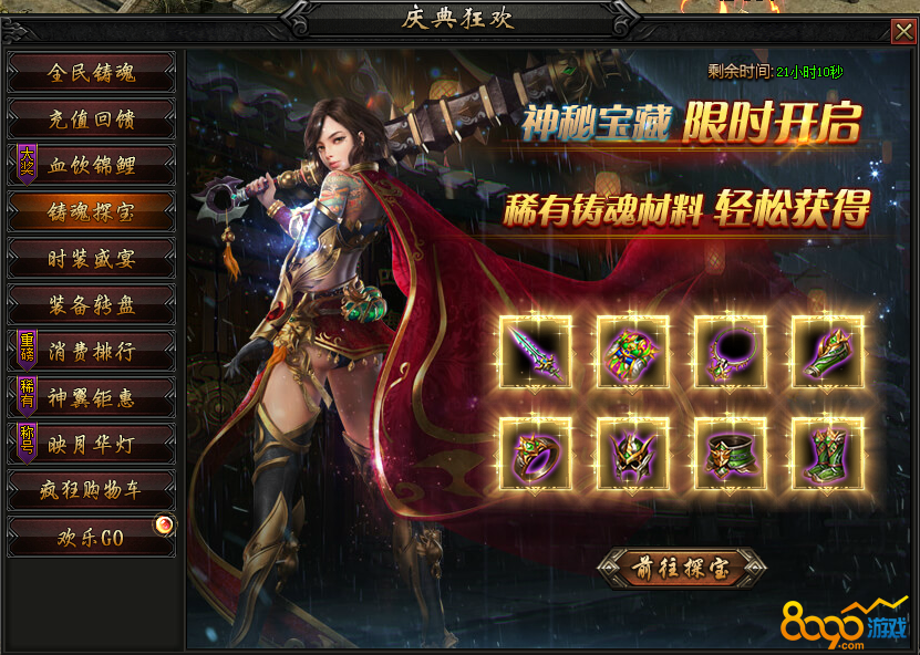 活动内容:神秘宝藏,限时开启!全新铸魂材料限时加入宝藏,集齐开启超强秘技“光芒万丈”~