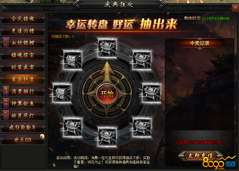 活动内容:活动期间,每天可以免费参与抽奖,打BOSS收集庆典币可以获得更多抽奖次数,惊喜奖励摇出来~