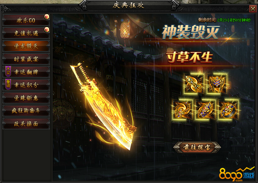 活动内容:圣龙毁灭套装,限时开启!活动期间寻宝概率产出圣龙装备毁灭部位