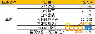 *活动期间,宝藏限时产出聖龍装备(毁灭部位),概率公示如下: