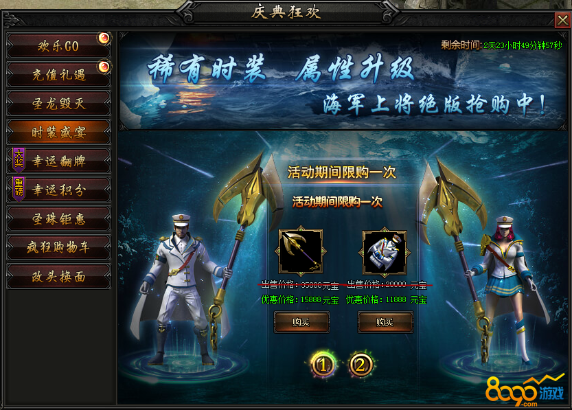 活动内容:华丽时装全新上线,永久时装限时折扣出售~