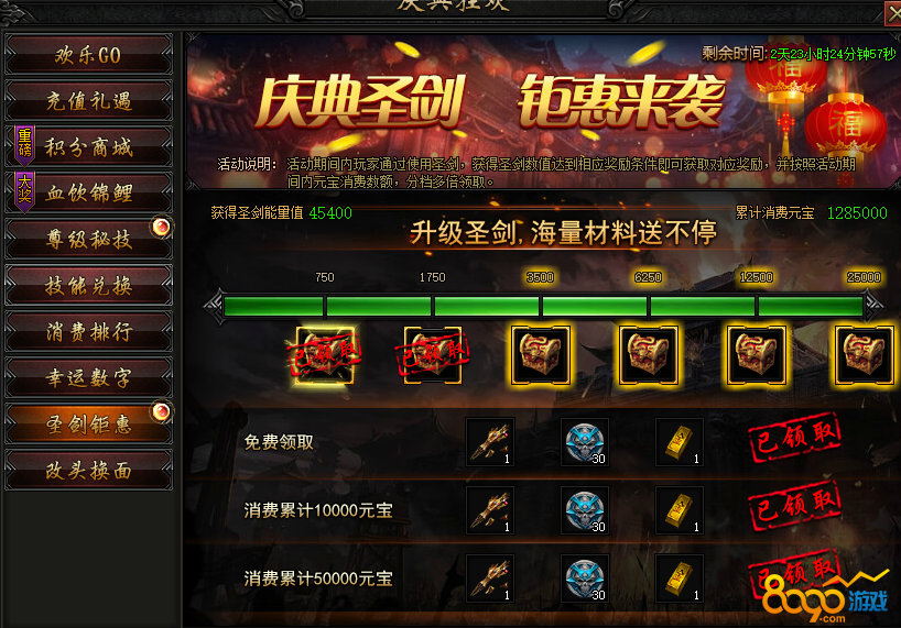 活动内容:消耗道具,返还一定道具,满足元宝消耗更有多倍领取